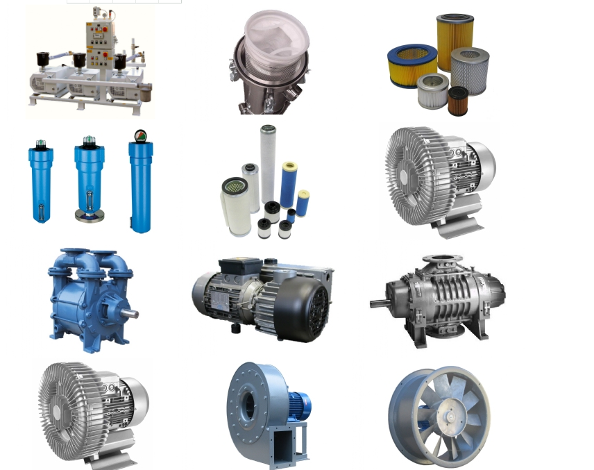 過濾器、鼓風機、真空泵、工業風扇、壓縮機、法蘭泵、真空系統等。